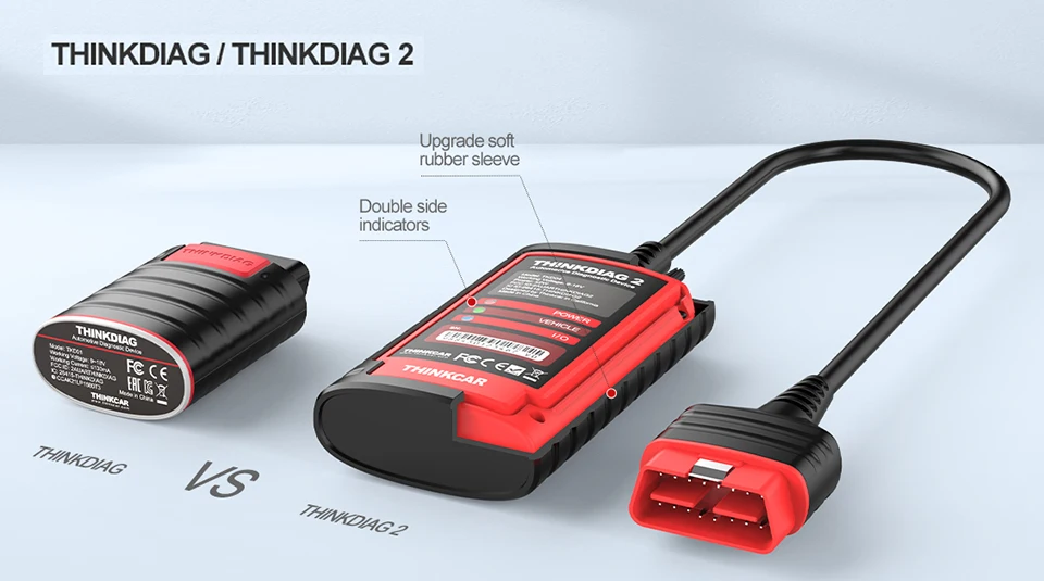 4. THINKDIAG 2 имеет двойные боковые индикаторы, мягкий резиновый рукав Upgrad, кабель obd2.