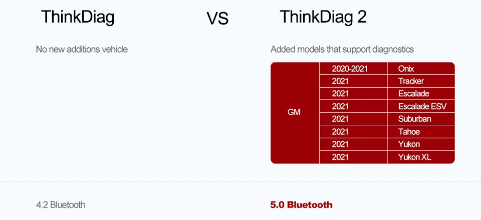 2. THINKDIAG 2 поддерживает больше автомобилей, чем thinkdiag, как для GM car 2021 год.