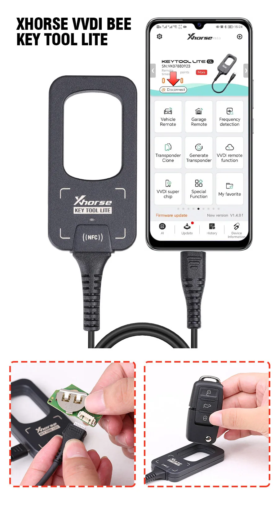 Xhorse VVDI BEE Key Tool Lite Работа с приложением Xhorse для телефона Android:
